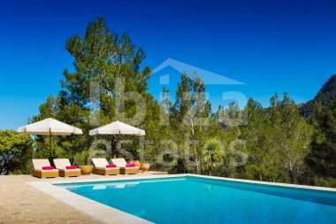 Can Thiago is a stunning four-bedroom villa, comfortably sleeping 8 adults. It is the perfect place to sit back, relax and enjoy the spectacular views by the private heated swimming pool (15 x 5.5 metres) with plenty of space on the terrace for sunbathing. The bedrooms at Can Thiago are arranged together at one end of the villa, apart from the private Master Suite on the upper level, which has magnificent views out to sea. All bedrooms feature en-suite bathrooms, Bose speakers and a complimentary selection of toiletries. If you manage to pull yourself away from the heated pool, or leave the comfort of your bedroom, there are other beautifully designed spaces to enjoy. Relax in the large lounge area with access to the outdoor pergola, or find a snack in the sleek fully equipped kitchen. For dinner, both indoor and outdoor dining areas are available so the choice is completely up to you. Spectacular views guaranteed from both locations!