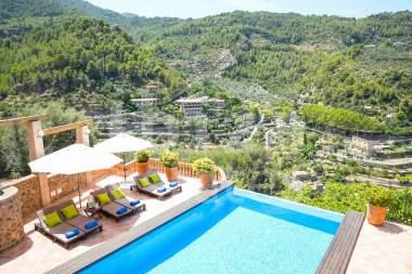 Perched above the charming village of Deià, the luxurious Casa Jaime blends traditional Mallorcan charm with contemporary elegance. Set against the stunning Tramuntana Mountains, it offers sun-drenched terraces, a shimmering infinity pool, and lush gardens—an idyllic retreat for relaxation. Thoughtfully restored with high-end finishes and artisanal details, its interiors exude warmth and sophistication, while expansive outdoor spaces showcase breathtaking views. Accommodating up to eight guests across four sumptuous suites, this haven of comfort and style promises an unforgettable stay. Stroll through cobbled streets lined with boutiques and galleries, or unwind at Cala Deià, a secluded cove with turquoise waters. Whether savouring fresh seafood by the shore or watching the sun dip into the Mediterranean, every moment here is pure magic. Designed for rest and indulgence, Casa Jaime features four elegant suites. The master suite boasts a plush queen bed, opulent en-suite, and private terrace with mountain views. Two guest rooms offer twin beds, luxurious en-suites, and countryside vistas, while the secluded pool suite features a queen bed, stylish en-suite, and direct pool terrace access. Additionally there is a study featuring a luxurious sofa bed. Outdoor spaces invite total serenity, from bougainvillea-draped terraces to an infinity pool blending seamlessly with the horizon. Lounge in the Mediterranean sun, sip wine under lantern-lit skies, or unwind indoors by the fireplace or in the state-of-the-art media room. The gourmet kitchen inspires everything from leisurely breakfasts to sunset feasts, with alfresco dining areas offering stunning backdrops. Beyond the villa, Deià’s renowned restaurants—from Michelin-starred La Residencia to the cliffside Ca’s Patro March—celebrate Mallorca’s rich flavours and culinary traditions.