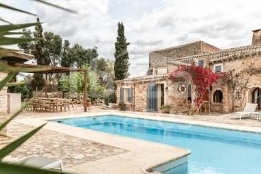 Can Papaya is situated in the beautiful countryside of Felanitx in southeast Mallorca with the stunning beaches of southeast Mallorca within easy reach. Within a 10 min drive you will reach the villages of Felanitx to the south, Porreres to the north and Campos to the west, where you will find markets cafes and restaurants. Even if Palma is only a 40 minute car ride away and the airport 30 min, the house has a feeling of complete countryside tranquillity. The somewhat bumpy access to the house makes you feel like once you have reached the house you are in your own secluded universe. The house has over 300 years of history and has been lovingly renovated over the years with the aim to keep the unique charm of the house. Can Papaya consists of five different apartments connected with each other. It is ideal for large family’s, groups of friends, groups of colleagues, or anyone who likes the idea of holidaying together, still with the possibility to have some privacy and own space. All ”apartments” have a bedroom with a double bed, living room (some with sofa beds) and en-suite bathroom. The heart of the finca consists of a large kitchen and dining room with fire place together with a cosy lounge with an open fireplace. The heart of the house is the kitchen, which was recently renovated with the idea in mind to make it suitable to cook for large groups of people. There are two large fridges (small freezer), two dishwashers, oven, microwave and cooker. The kitchen is fully equipped with everything you need. The owners love to cook and have made sure that this is a kitchen where you can do so. Outside at Can Papaya, there is a newly renovated outdoor kitchen with dish washer, sink, gas hob, and a professional BBQ. Next to the outdoor kitchen there is a dining table and seating for ten under a shaded pergola. There is a large pool (10 x 4,5m), a Jacuzzi and all over the garden there are groups of outdoor furniture with chill out areas, providing plenty of places to hide away with a cup of coffee and a good book.   The absolute hot spot of the house is the pool house. The house has two built in sofas, sun chairs and a table. This is the ultimate chill out area, with permanent shade and undisturbed views of the pool. Cool and comfortable during the day and cosy for socialising in the evening. Can Papaya boasts 5 double rooms, 5 bathrooms, perfect for holidaying with family and friends, with the added luxury of your own space and privacy. The activity room has two separate entrances from the outside, where you will find a table-tennis table, yoga mats, training bench, weights, board games, darts and a TV. There are many great supermarkets close by. One favourite is Eroski Felantix. It is situated 10 min away and has a meat and fish counter. The beaches are within 20-25 min proximity. Mallorca’s most beautiful beach Es Trenc is situated 25 min away. A favourite beach is Porto Cristo.