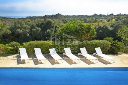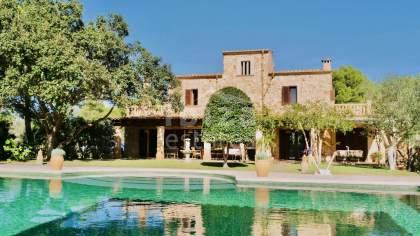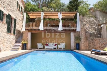 Nestled amidst fragrant pine forests and centuries-old olive groves, this stunning finca-style villa offers the quintessential Mallorcan retreat. Constructed from traditional caramel-hued stone, the six-bedroom haven blends seamlessly with its natural surroundings, exuding rustic charm and understated elegance. Inside, the villa is a celebration of Mediterranean design, featuring cozy furnishings, natural materials, and tasteful décor that reflects the island's essence. Step outside, and you’ll discover a private garden oasis—a perfect escape where serenity reigns. Whether you’re cooling off in the expansive family-friendly pool, indulging in leisurely barbecues, or simply relaxing under the warm Mallorcan sun, this villa promises the ultimate getaway. With some of Mallorca’s most scenic coves just a short drive away, it’s the perfect base for both exploration and relaxation. Set in the heart of Mallorca’s picturesque countryside near the charming town of Alaró, the villa enjoys a postcard-perfect setting. Rolling fields dotted with citrus and almond trees stretch towards the dramatic peaks of the Tramuntana Sierra, providing a breathtaking backdrop. Alaró’s cobbled streets, lively town square, and inviting cafes are a short stroll away, while nearby hiking and biking trails—including the iconic route to Alaró Castle—invite adventure seekers. And for those craving city buzz, Palma is just 25 minutes by car. This villa comfortably accommodates up to 12 guests across six thoughtfully designed bedrooms. Five bedrooms are located in the main house, while the sixth enjoys added privacy in a garden-side extension. Each bedroom is air-conditioned and opens onto a terrace with picturesque views of the leafy grounds. Five of the bedrooms feature modern ensuite bathrooms with walk-in showers, and the ground-floor suite boasts an indulgent whirlpool tub for two, as well as a walk-in wardrobe. Surrounded by lush greenery, the villa’s expansive gardens are an idyllic setting for unwinding under the Mediterranean sun. At its heart lies a sparkling 14 x 7-meter emerald pool, complete with a shallow section for children to splash and play safely. Comfortable loungers, parasols, and a double sunbed invite lazy afternoons, while ping-pong and pool tables add a touch of playful fun. For gamers, a PlayStation console ensures entertainment for all ages. The villa’s fully equipped kitchen features premium appliances, including a sleek Smeg kettle and toaster, making meal preparation a joy. A breakfast bar provides a casual spot for coffee and conversation, while the outdoor dining area—seating up to 12 guests—is perfect for savouring long, leisurely meals al fresco. A gas barbecue, complete with a chill-out area and additional dining space, sets the scene for unforgettable evenings under the stars. For dining out, explore the nearby town of Portocolom, famed for its fresh seafood, or venture to Cala d’Or, where a variety of restaurants and buzzing nightlife await. This villa is more than just a place to stay; it’s a serene haven where every detail is designed to immerse you in the beauty and charm of Mallorca. From tranquil mornings by the pool to days of exploration and lively evenings with family and friends, it’s a destination you’ll never want to leave.