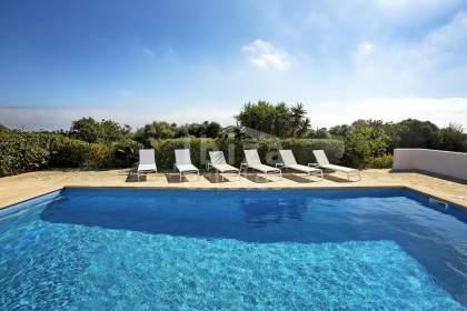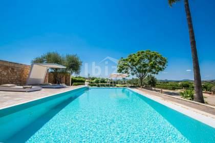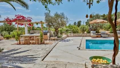 Finca Herrera is a beautifully situated property within a site of over 1 hectare between Santanyí and Cala Figuera. From the house, you have a fantastic view over the sea to the island of Caprera, Cala Figuera, the Mondragó nature reserve and all the way to the mountains around the monastery of Sant Salvador. The Finca is about 900 metres from the sea (as the crow flies). From the Finca, you can reach the beautiful coves and beaches of the southeast coast in a few minutes by bike, Santanyí and Cala Figuera can be reached by car within 5 minutes. Fully refurbished in 2018, the two-story Finca has been divided into two apartments, each boasting a kitchen and living room. In total, there are four bedrooms, with two bedrooms situated in each apartment. The property features multiple distinct terraces, some of which are covered, and the standout is the expansive rooftop terrace. Surrounding the 10m x 5m swimming pool is yet another inviting terrace space. Equipped with essential amenities such as TV, Wi-Fi internet (DSL), washing machine, dishwasher, fireplace, underfloor heating, iPod docking station, fans, barbecue, and covered patio, you'll quickly acclimate and feel perfectly at home. Discover the tranquility of Cala Figuera, a serene fishing village where you can savor the offerings of waterfront restaurants, cafes, and shops. Stroll along the peaceful streets, gaze over the cliffs at sunset, and indulge in leisurely days observing the world go by. Just a short drive from Santanyi, Finca Herrera provides proximity to a diverse array of dining options and cafes. Explore the vibrant weekly market and marvel at the architectural beauty shaped by centuries of historical influences, from the Romans to pirates.