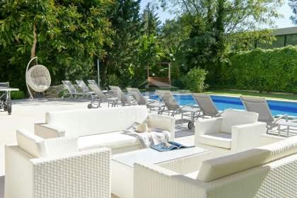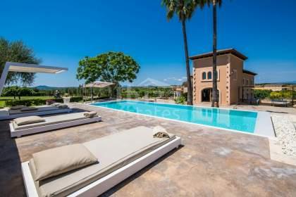 Discover Villa Calmante, a newly renovated family estate blending luxury, privacy, and natural beauty. Set within 15,000 square meters of serene olive groves producing organic extra virgin olive oil, this estate is the epitome of Mediterranean elegance. Situated just 15 minutes from the airport and 10 minutes from Palma’s vibrant city centre, Villa Calmante offers a perfect balance of convenience and seclusion. With Mallorca’s stunning beaches only a short drive away and the charming towns of Soller and Santa Maria nearby, guests can easily explore the island’s best attractions, from picturesque markets to world-class dining. Villa Calmante tranquil, gated grounds provide a peaceful retreat, surrounded by verdant olive trees and breathtaking mountain views. Whether you’re lounging by the pool or taking a scenic day trip, the estate offers a serene sanctuary for relaxation. The villa features five ensuite double bedrooms, each thoughtfully designed for comfort and tranquility. The master suite boasts a private balcony with stunning views, a walk-in closet, and a luxurious bathroom. Fitness enthusiasts will appreciate the in-room equipment, including a Nohrd rowing machine, treadmill, and yoga mats. At the heart of the villa is a spacious open-plan kitchen, dining, and living area, perfect for creating cherished family memories. Cosy up by the log fire, enjoy a movie in the state-of-the-art cinema, or unwind to music on the Sonos speaker system that extends to the outdoor terrace and pool. With underfloor heating, air conditioning, and high-speed internet throughout, every detail ensures your comfort. The fully equipped modern kitchen and outdoor BBQ area invite guests to enjoy homemade feasts, while the nearby towns of Binissalem and Santa Maria offer exceptional dining options, from authentic Mallorcan flavours to international cuisine. Ideal for families, Villa Calmante offers child-friendly amenities on request such as a cot, highchair, and safety measures for the pool. A separate cottage on the grounds is available for staff, and daily villa cleaning or estate management services can be arranged to enhance your stay. Escape to Villa Calmante, where modern luxury meets timeless natural beauty, creating an unforgettable Mediterranean experience.