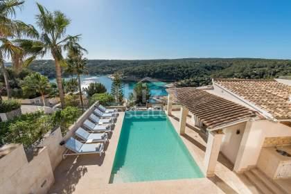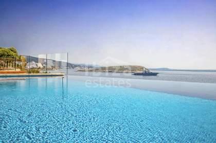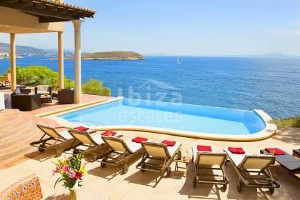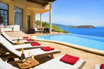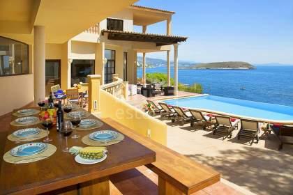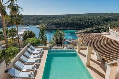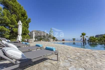 This esteemed residence epitomizes lavishness, perched atop an 80-metre cliff and renowned as a premier destination. Recently renovated in 2023, this deluxe abode offers an unmatched retreat. Positioned on the coveted frontline, La Mola Deluxe presents a sumptuous sanctuary with a sprawling 520 square metres of living space and expansive terraces spanning 350 square metres. Boasting five double bedrooms, each featuring its own en suite bathroom adorned with top-tier linens, and private access to individual terraces, ensuring an indulgent stay. Embark on cinematic journeys within the confines of your private 21:9 home theatre, accommodating up to nine discerning guests. Culinary excellence is effortlessly achieved in the fully equipped professional kitchen, while every corner offers mesmerising views of the Mediterranean Sea and the infinity pool. Exclusivity is paramount, with the villa boasting an independent BBQ area and lounge, an outdoor cinema, and a seamlessly automated system for control. Immerse yourself in the expansive, heated saltwater pool spanning 100 square metres, exuding sophistication in its design. La Mola Deluxe redefines luxury living with its cutting-edge amenities, including intelligent iPad controls for comprehensive household management, allowing guests to personalise floor heating, lighting, and surround sound systems to their preferences. Discover an oasis of serenity, refinement, and unparalleled opulence at this distinguished Mallorcan retreat. Guests can partake in various activities in and around Andratx, such as snorkelling and cycling. Cala Marmassen Beach is a brief 16-minute walk away, while Platja Brismar is located 1.5 miles from the property. The neighbourhood of Puerto de Andratx boasts an enviable position just 5 kilometres from Andratx. Renowned as one of the most enchanting harbours in the Mediterranean, it exudes a quaint charm with its compact yet well-appointed surroundings. While boasting numerous eateries, Puerto de Andratx maintains its essence as a small fishing haven, inviting visitors to unwind at its array of cafes and bars, all the while relishing in the scenic vistas. Two petite beaches adorn its coastline, with larger stretches of sand and captivating hiking trails in close proximity. Luxurious spas and a golf course further enhance the allure of this destination. Ideal for indulging in a five-star retreat, visitors can leisurely wander along the waterfront promenade, flanked by upscale boutiques and culinary delights, or embark on a boat excursion to discover the region's exceptionally picturesque shoreline. Getting around is a breeze, with Palma Airport a mere 40-minute drive away, Palma Centre just 35 minutes by car, and Port d'Andratx a short 5-minute drive. Other nearby attractions include the Santa Ponsa beach, reachable in 25 minutes, and the Camp de Mar beach, just a 15-minute drive away.