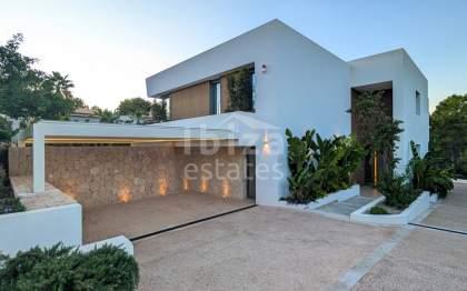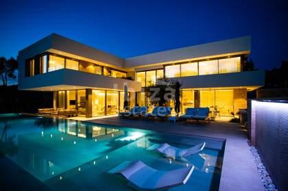 This modern luxury villa of high quality is located on a flat plot of approximately 2030 m² in a quiet and sought-after area of Nova Santa Ponsa, but very close to the golf course.