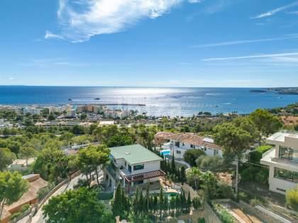Esta villa recientemente reformada presenta algunas de las vistas de 180 grados más impresionantes de la costa suroeste. Con una superficie aproximada de 320 metros cuadrados distribuidos en dos plantas, la propiedad cuenta con un plan de ampliación aprobado de unos 60 metros cuadrados, que permite construir un dormitorio principal y una terraza adicionales. Tan pronto como entras, eres recibido con impresionantes vistas. La planta superior cuenta con un salón/comedor/cocina increíblemente amplio y luminoso que se abre a una terraza exterior. La planta inferior alberga 4 dormitorios en suite, todos con vistas al mar. En el exterior, la zona ajardinada y la piscina ofrecen vistas ininterrumpidas al mar. ¿Por qué elegir entre una casa perfecta o una oportunidad de inversión cuando puede tener ambas? Tanto si busca la casa perfecta como una oportunidad de inversión, ésta sin duda le encantará. Otras características de la propiedad incluyen: Suelos de parquet de roble, preinstalación de calefacción central de gas, agua caliente por energía solar.